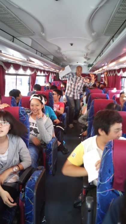 バスでは自己紹介とゲームが始まってます。