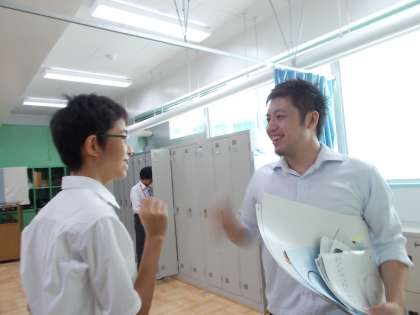 アダムズ先生にすっかり親しんでいて、元気のいい会話が聞かれます。上達しています。