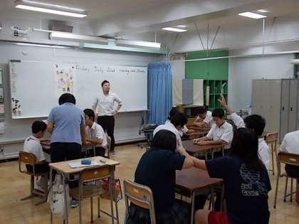 イングリッシュサマースクール、5組も大変盛り上がっています。楽しみながら英会話を習得しています。