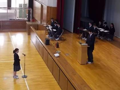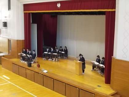 生徒総会がありました。今日まで各クラス、各委員会で話し合いを重ね、今日の総会に臨みました。議長団が議事進行を進め、平成29年度の活動計画の承認を得ることができました。生徒による運営は、とてもすばらしかったです。