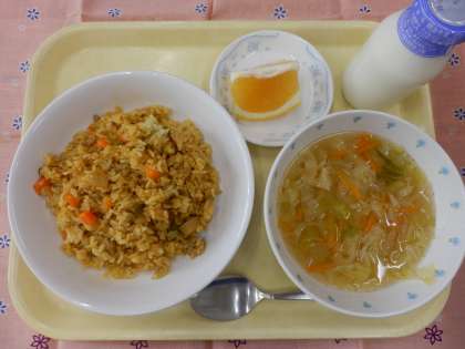 今日の献立は、メキシカンライス、ジュリエンヌスープ、宇和ゴールド、牛乳でした。