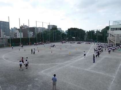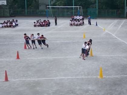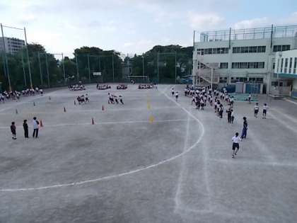 運動会に向けて、朝練習が始まりました。今日は、トラックは2年生、フィールドは1年生に分かれて活動しました。生徒たちは元気いっぱいです。