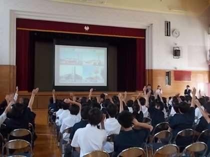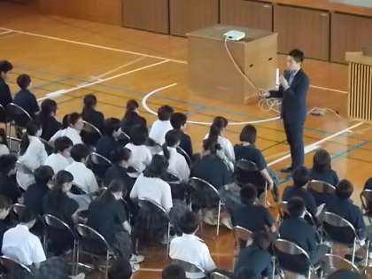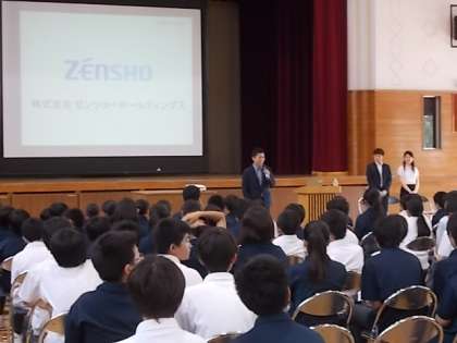 1年生は「ゼンショーホールディングス」の方からご講演いただきました。様々な角度からのものの見方、英語の自己紹介など大鳥中生にぴったりの話でした。