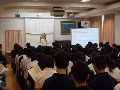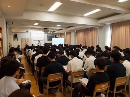 3年生は、高校の先生から高校に関する話をご講話いただきました。