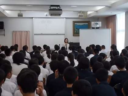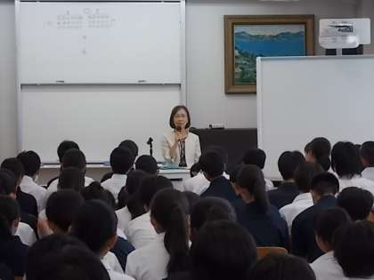 2年生は、「人権講話」を行いました。人権委員の松村由紀子さんからお話をいただきました。