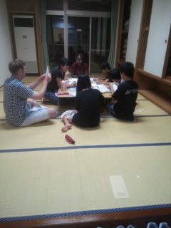 頂を目指して、夜も英語三昧、素晴らしいキャンプです。