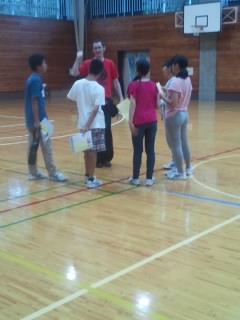 休み時間も講師先生に質問する子どもたち、体育館は熱気に包まれています。