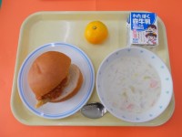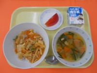今日の献立は、しらすのかきあげ丼、けんちん汁、甘夏、牛乳でした。