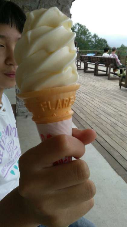 五組の子どもたちと清泉寮でソフトクリームを食べました。