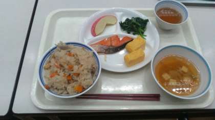 今日の朝食は混ぜご飯の和食です。