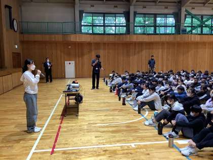 体育館で入館式を行いました