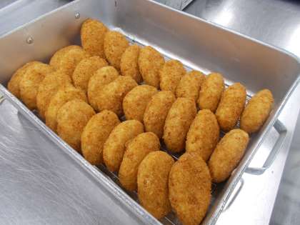今日は、白いんげん豆やじゃがいも、鶏ひき肉などを合わせてコロッケを作りました。白いんげん豆は粗めにつぶし、豆の食感が程よく残るように仕上げました。