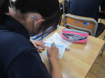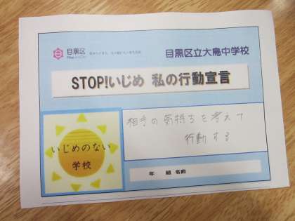 生徒一人ひとりが行動宣言を考え、クラスの行動宣言を決めました