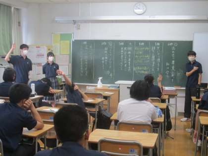また、クラスの行動宣言は、昼の放送で各学級の学級委員がスローガン設定理由を報告していきます