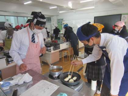 野菜や鶏肉を切る時の包丁の使い方が、危なっかしい生徒もいました