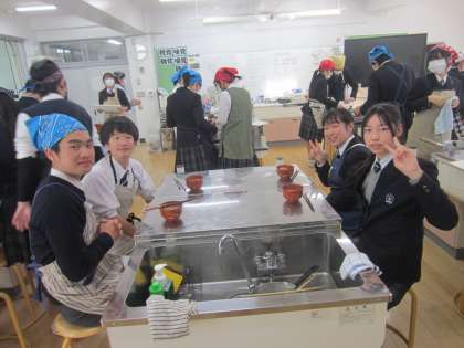 目的は、「日本料理の基本である出汁をとる」「計量と野菜の切り方を学ぶ」です