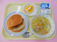 <献立>☆フィッシュバーガー☆ひよこ豆と野菜のスープ☆果物(甘夏)☆牛乳甘夏は、...