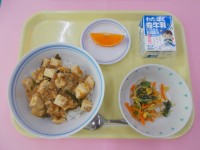 <献立>☆マーボー豆腐丼☆ナムル☆セミノール☆牛乳新年度が始まり、2週間経ちまし...