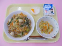 <献立>☆あんかけ焼きそば☆中華風キャベツ☆牛乳寒天☆牛乳1年生がとてもよく食べ...