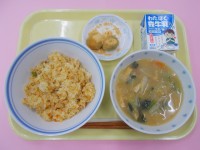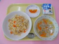 <献立>☆五目チャーハン☆汁ビーフン☆ブラッドオレンジ☆牛乳今日の果物は「ブラッ...