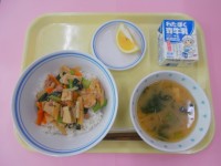 <献立>☆豚肉と高野豆腐のうま煮丼☆もやしと油揚げのみそ汁☆ニューサマーオレンジ...
