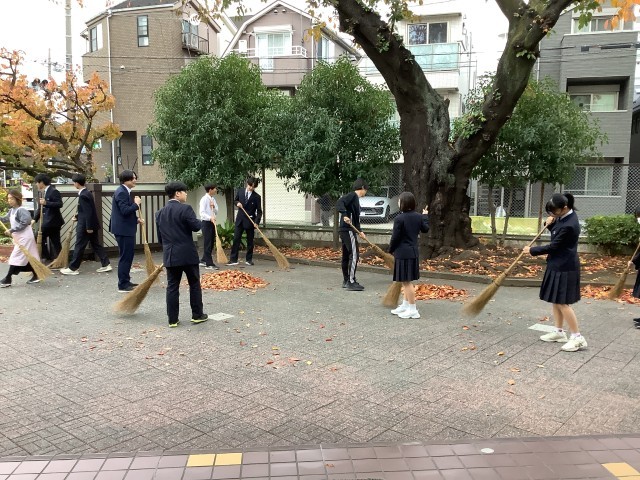 落ち葉の季節になりました。朝から落ち葉はきに参加してくれています。