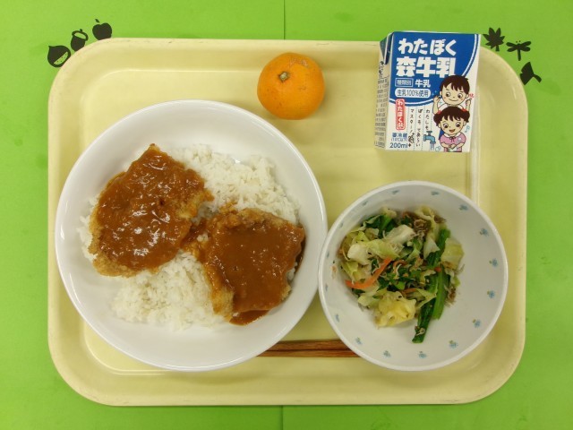 かつめし、きゃべつとじゃこのさっぱり和え、みかん、牛乳