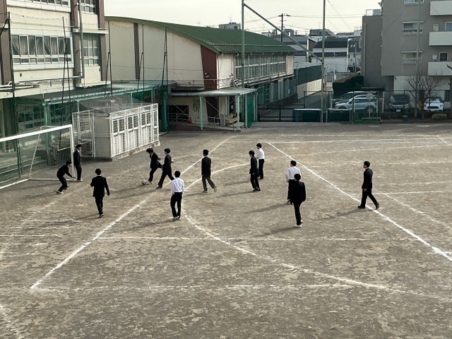 昼休みに校庭でサッカー