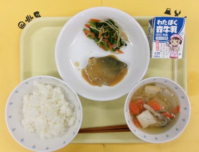 1月20日(火)の給食 公開日 2026/01/22 更新日 2026/01/20 給食 【献立】ご飯、鯖の味噌煮、野菜のからし醤油あえ、みぞれ汁、牛乳【主な食材産地】鶏肉(宮崎)、しょうが(高知)、もやし(栃木)、にんじん・大根・ねぎ(千葉)、しめじ(長野)、さば(長崎)、小松菜(茨城)、米(秋田)