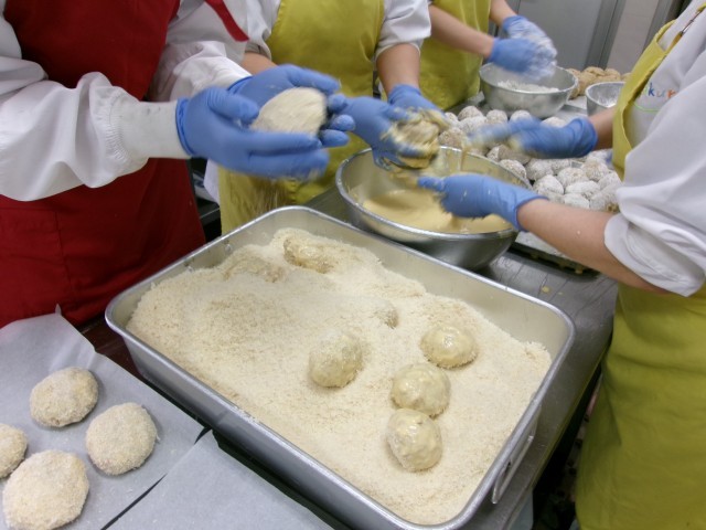 揚げている間にパンクしてしまうことを想定して多めに作りましたが、きれいにできあがりました。多めにできた分は各クラスへおまけとして提供したので、おかわりじゃんけんが盛り上がるクラスもありました。