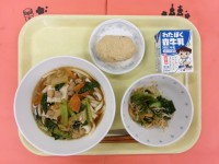 令和8年度の給食が始まりました。新しいクラスでの給食は準備時間もかかるので、今日は盛りつけがしやすく食べやすい献立にしています。