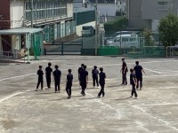 今日も元気よく外でバレーボール。前期最後の委員会活動です。