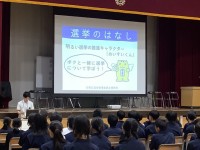 生徒会役員選挙に向けて、目黒区選挙管理委員会事務局から出前授業がありました。