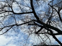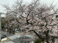 晴れ間が見えてきました。桜の花も開き始めています。