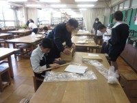 今日のI組の家庭科と作業の時間は、スウェーデン刺繍と木工に分かれて授業を行っていました。