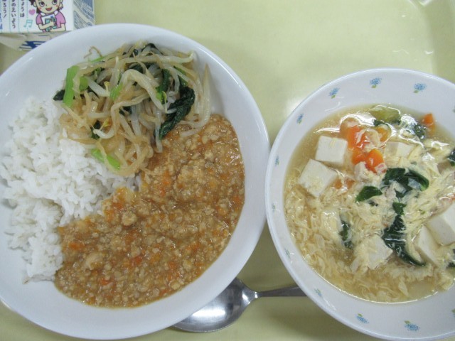 ・ ビビンバ(ナムル添え) ・ 卵とトマトのスープ ・ 牛乳