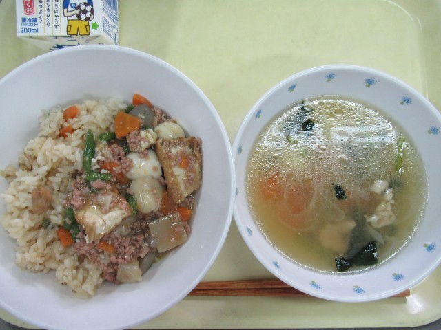 ・ こぎつねおこわ ・ 里芋とうずらの卵のそぼろ煮