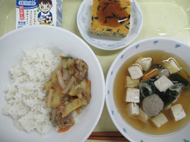 ・ じゃがいもの塩炒め ・ いわしのつみれ汁 ・ 牛乳