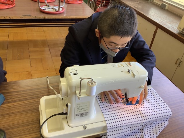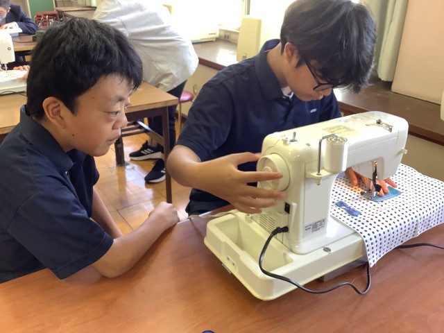 最初は「ミシンが苦手」と言っていた生徒も、「できた!」と喜んでいました。