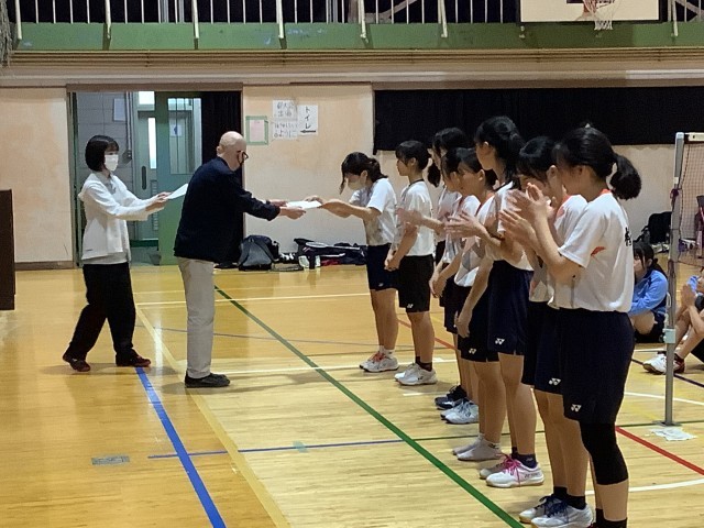 10月12日にバドミントンの新人大会がありました。女子はシングルスが3位入賞、ダブルスが優勝しました。
