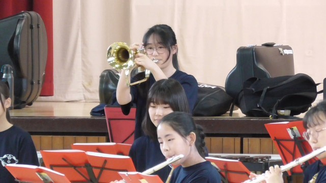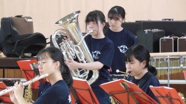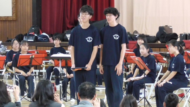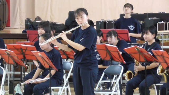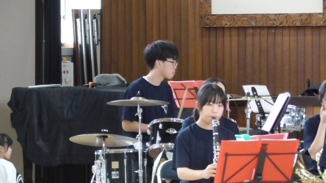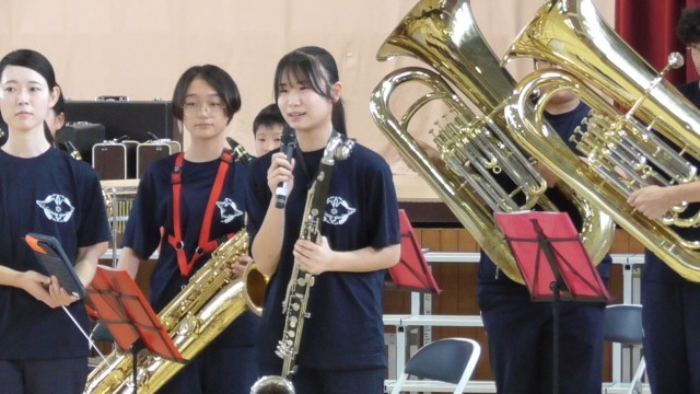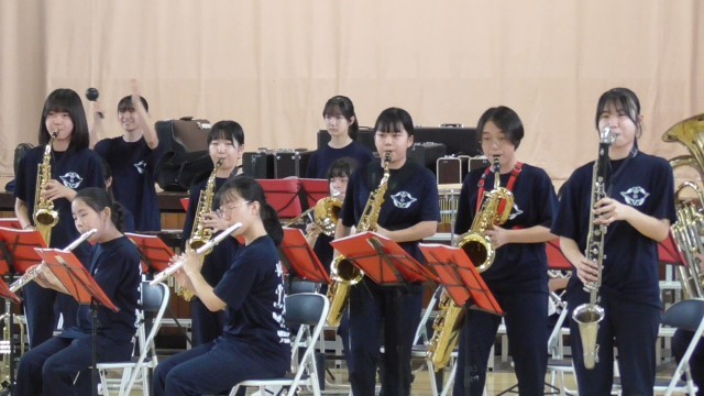 地域に根差した活動を大切にして、日頃から吹奏楽部の活動を応援していただけることに感謝の気持ちを持ちながら、2曲演奏しました。