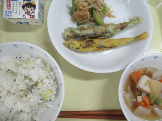 ・ さつまいもごはん ・ ししゃもの二色揚げ