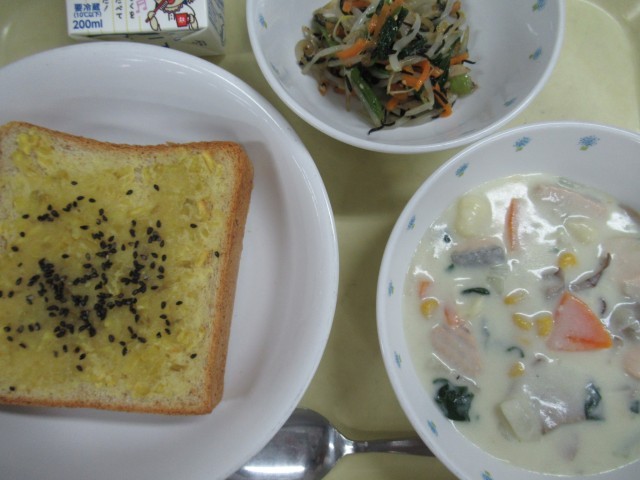・ スイートポテトースト ・ きのこと鮭のクリームシチュー