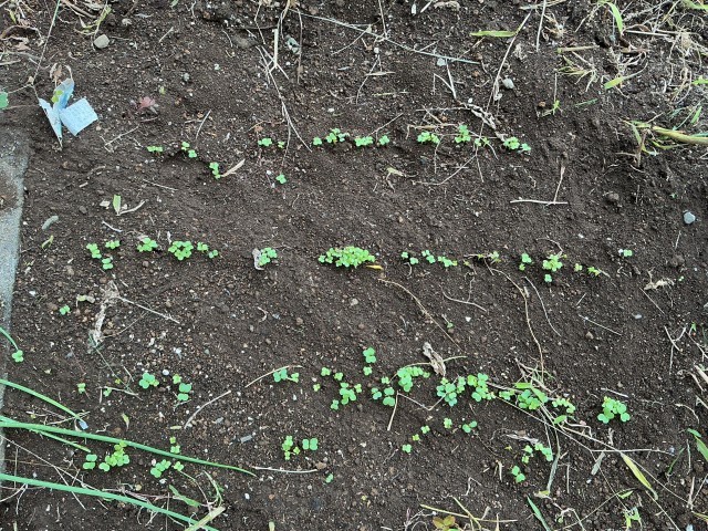 技術の授業では、「生物育成の技術」の実習で古代から行われている品種改良として、優良種子の選抜を行いました。中でもF1種のカブの種子をA組、B組、C組のそれぞれに分け、列ごとにすじまきしました。熱心に選抜しただけあって、発芽率がとても良さそうです。この後どのように育っていくのか、楽しみです。