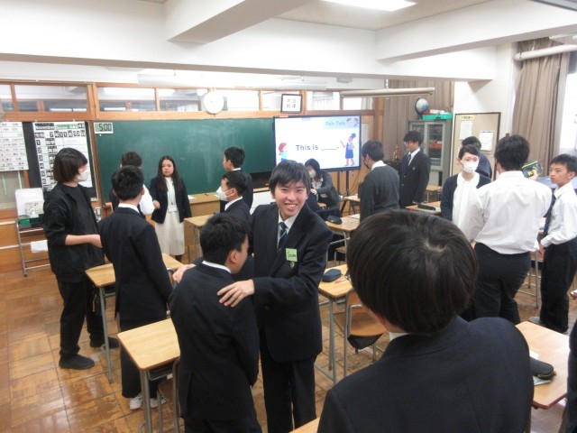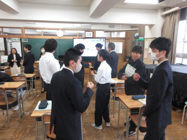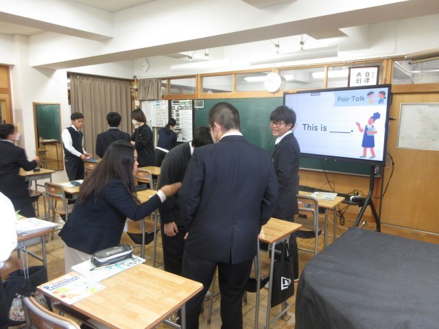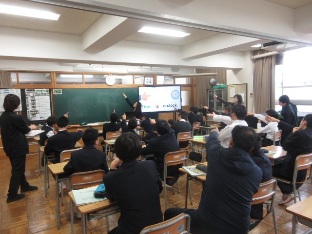 また、I組の英語の時間には、講師の先生とALTの先生による授業が行われていました。「This