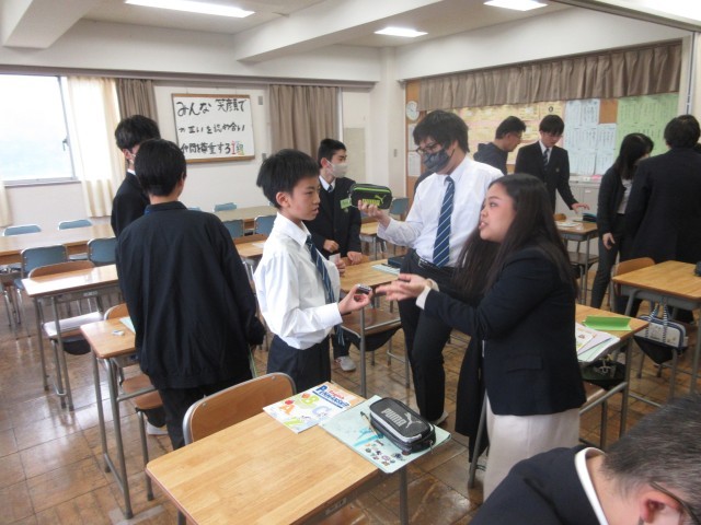 11月7日(金)にも実施しましたが、教員の初任者研修の一環として、第十中学校の先生が、I組の授業に1日参加し、生徒と一緒に活動をしました。
