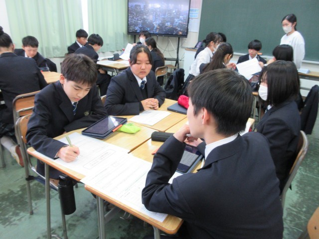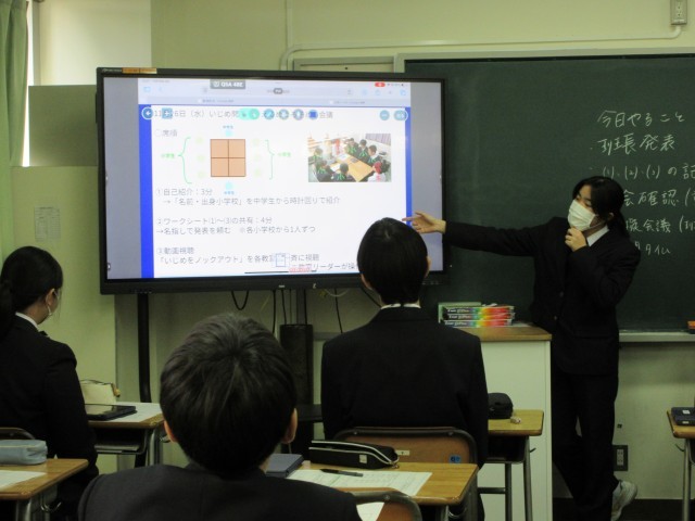 11月26日に実施される「いじめ問題を考えるめぐろ子ども会議」に向けて、2年生では話し合いを進めています。