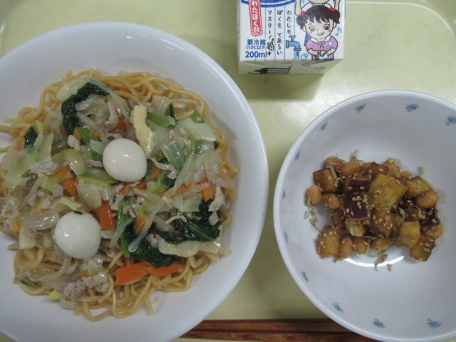 11月25日の給食 公開日 2025/11/28 更新日 2025/11/28 給食 ・ 青椒肉絲やきそば ・ さつまいもとじゃこと大豆の絡め煮・ 牛乳 豚肉(岩手) にんにく(青森) しょうが(高知) 玉ねぎ(北海道) にんじん(北海道) キャベツ(群馬) もやし(栃木) 長ねぎ(新潟) 小松菜(東京) さつまいも(千葉)