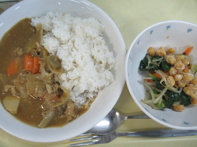 ・ 根菜の和風カレーライス ・ 揚げ大豆の和風サラダ