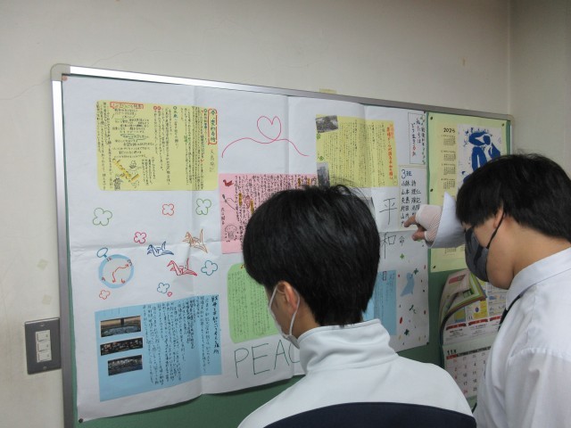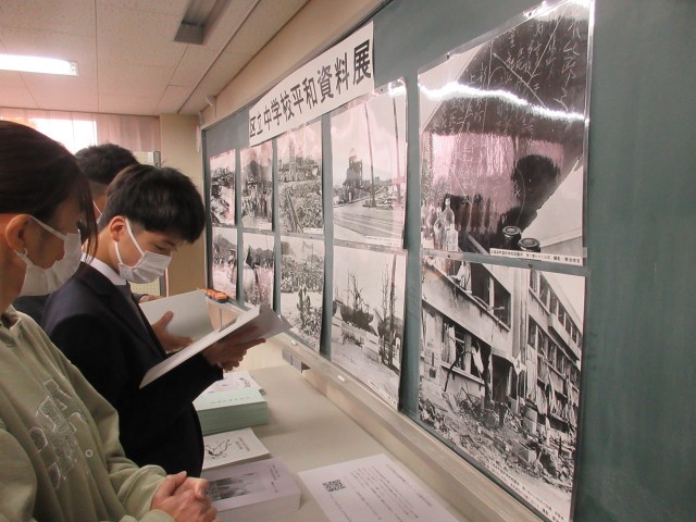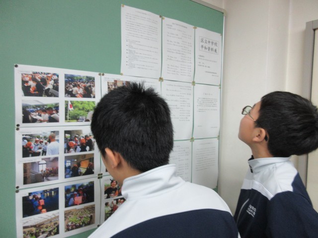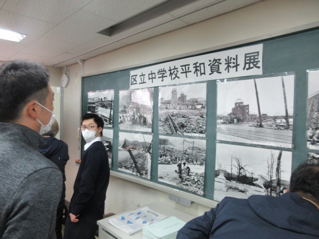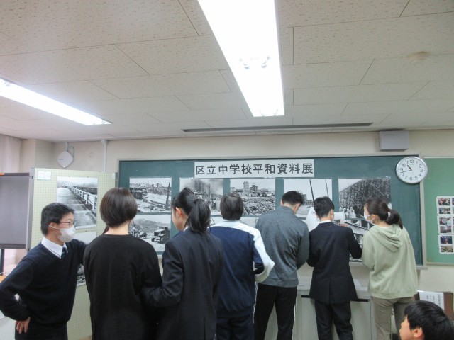 会議室に展示されている「区立中学校平和資料展」をI組も見学しました。